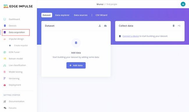 After you have made the new project, you should be sent to the Dashboard screen. Select Data Acquisition in the left menu: