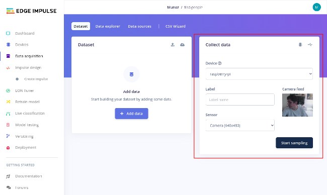 [WS ] Device "Embedded Linux" is now connected to project "find-people". To connect to another project, run `edge-impulse-linux --clean`.