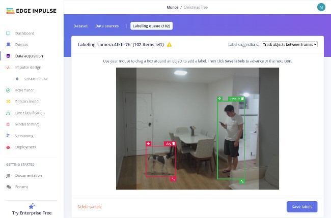 When you are happy with your dataset, click on the labeling queue tab on Edge Impulse Portal: